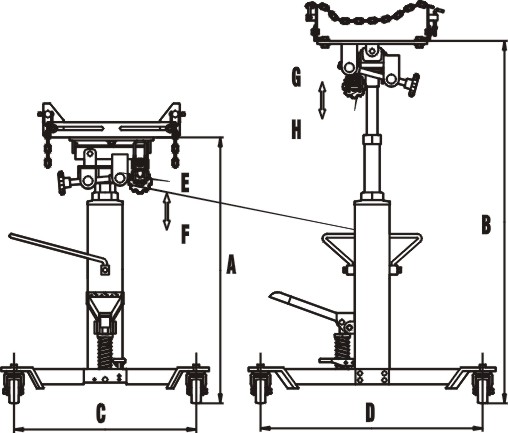 • Foot operated hydraulic stages allow for precise load control as well as rapid lifting abilities.
